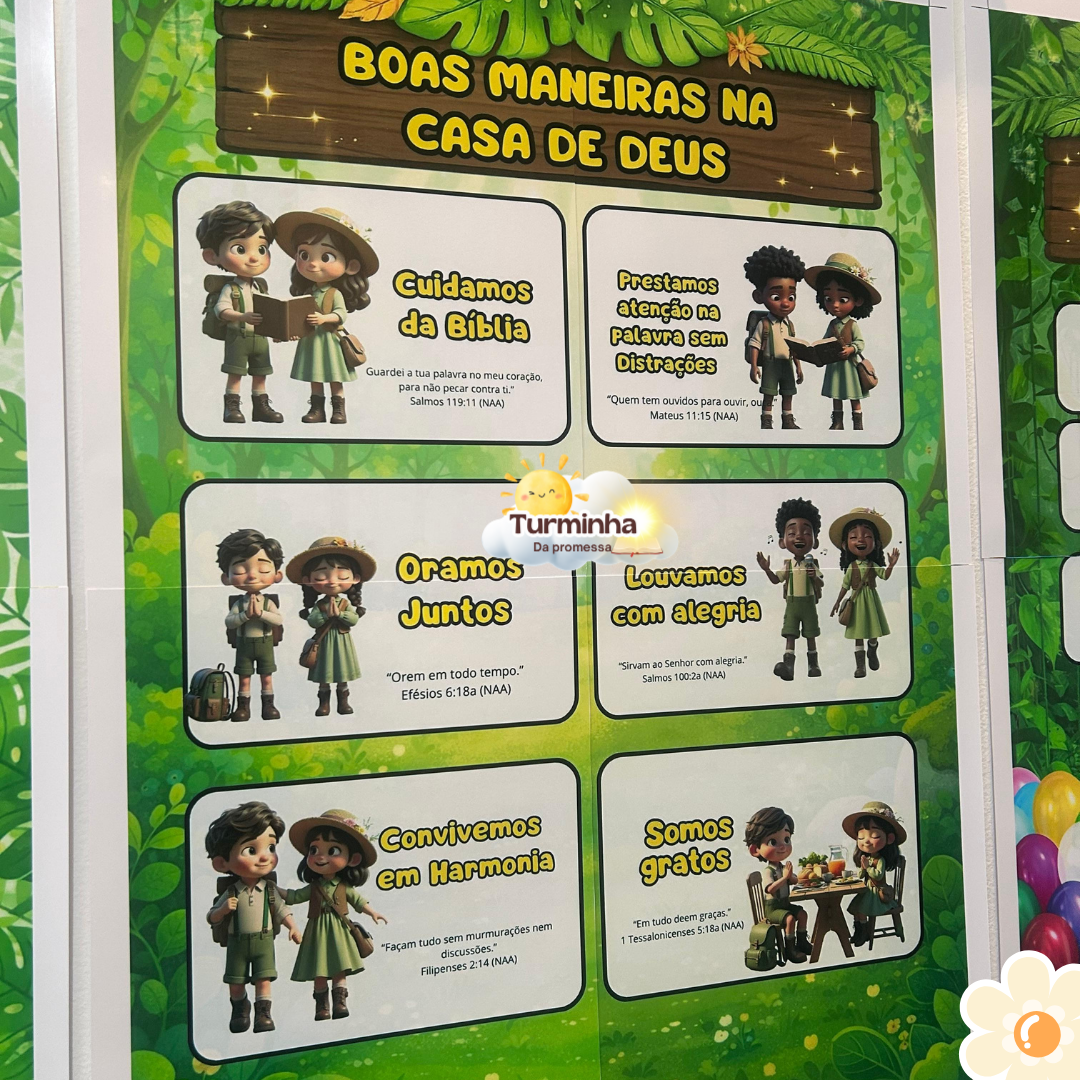 Uma experiência visual que organiza a sala de aula e apresenta às crianças a jornada com Jesus por meio da criação, usando elementos da natureza e animais para ensinar no Ministério Infantil todos os dias.